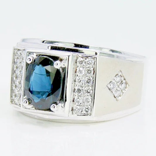 商品系列: 1克拉 藍寶石男戒